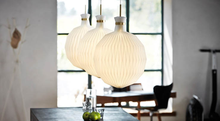 20世紀初め、デンマークの著名な建築家P.V.イエンセン・クリントは、紙を規則的に折り上げて作る手づくりのランプシェードを生み出しました。
